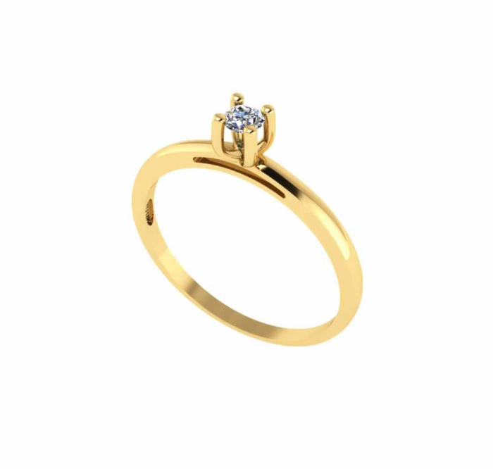 Anel de ouro amarelo solitário com zircônia 3mm.