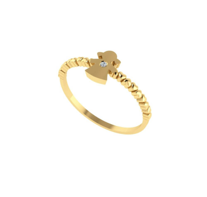 Anel com aro de coração e menina no centro com 1 zircônia. Para eternizar esse amor de mãe e filha.