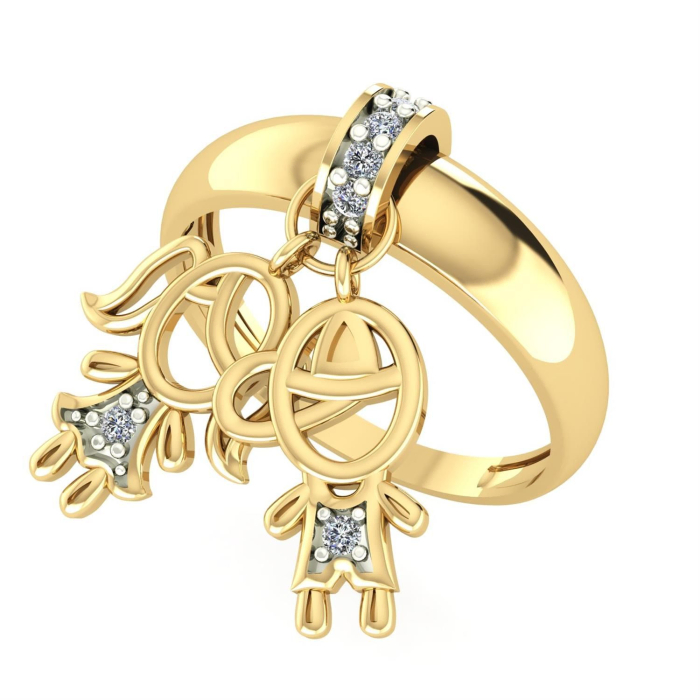 Anel lindo e super charmoso para presentear a mamãe na versão com Diamantes e pingentes de casal