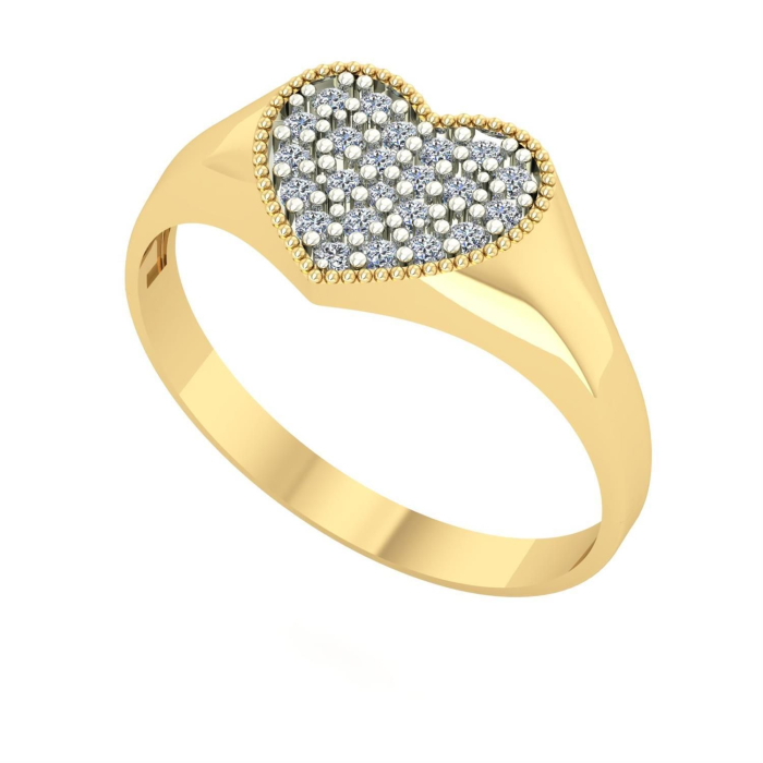 Anel Chancela no formato coração médio em ouro amarelo cravejado de zircônias. Anel muito utilizado no dedinho.