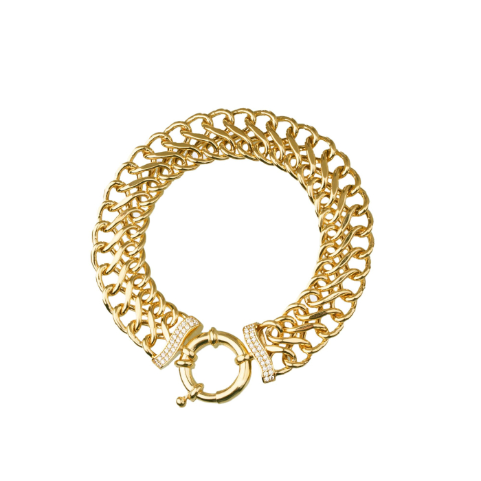 Adquira já uma pulseira deslumbrante em Ouro 18k/750 Lacraia Grossa, com detalhes em zircônia nas extremidades e um elegante fecho boia. A combinação perfeita de luxo e estilo. Compre a sua hoje!