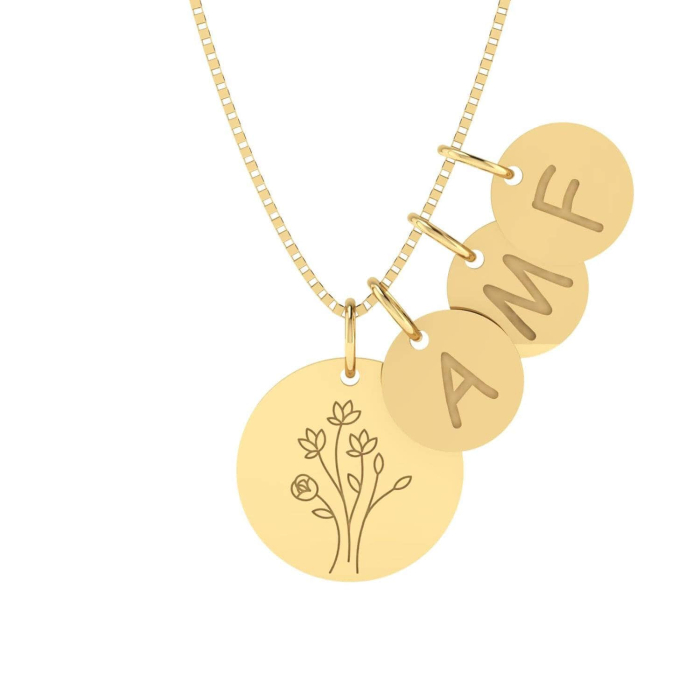 Gargantilha Árvore da Vida com Três Letras Ouro 18k