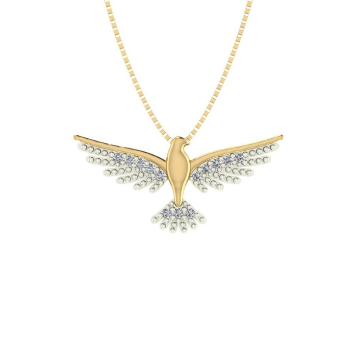 Pingente de espirito santos, com treze pedras de zircônia cravejadas.