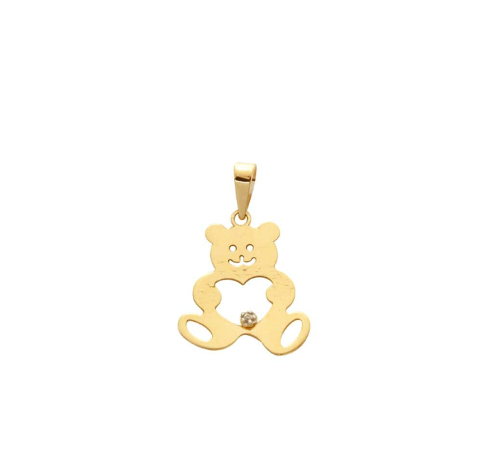 Pingente Ursinho com Coração Vazado Sem Pedra Ouro 18k