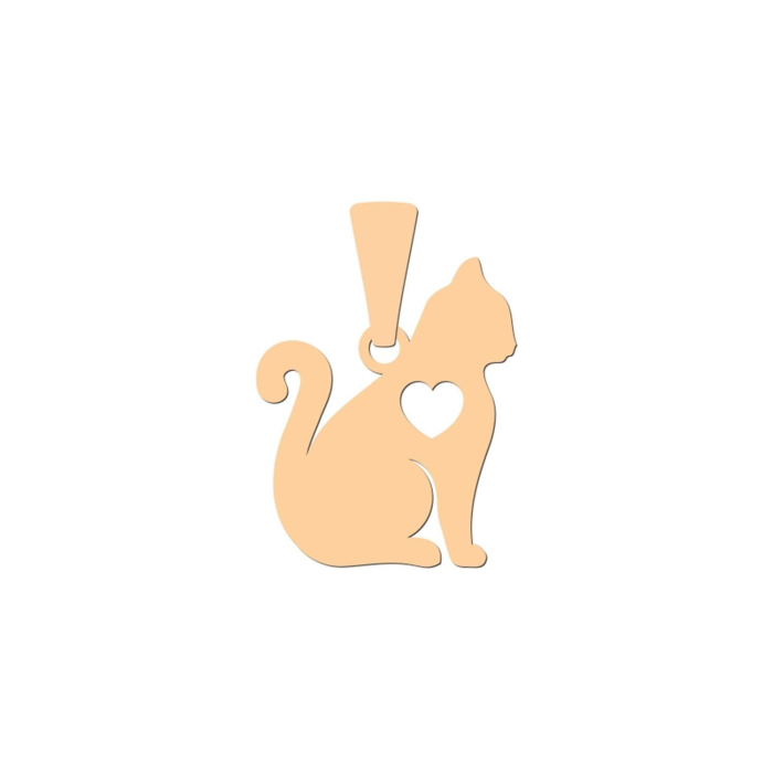 Pingente de ouro amarelo gato, com um coração vazado. Perfeito para homenagear seu pet. Corrente não acompanha