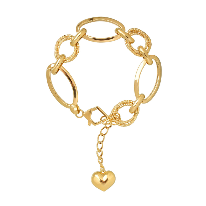 Composição Elos Ovais Lisos e Diamantados com Coração no extensor